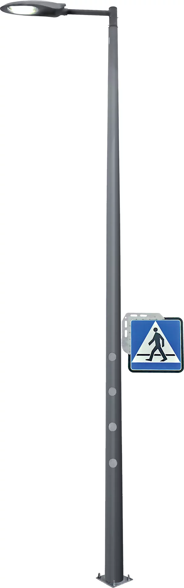 The Composite Street Lighting Pole can be combined with an LED lighting system and signage, to warn drivers of a pedestrian crossing. It is also possible to incorporate curtain motion sensors within the crossing and audible warning for pedestrians – such options being customer specific.
