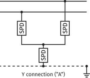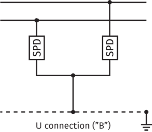 The DC side of the PV system can be either unearthed (insulated) in which case A (top right) shows how SPD’s should be connected OR with one pole earthed, B (bottom right) shows how SPD’s should be connected.