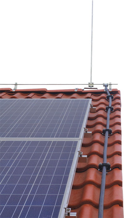 This system is ideal where space is in limited supply. Through using Insulated Lightning Conductor, the Air Terminal can be placed closer to the object to be protected – for example, roof-mounted plant or solar PV panels. Thus optimizing the lightning protection design