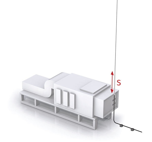The separation distance (where there is sufficient space to permit) can be increased by installing the Air Terminal on a free-standing mast and moving it further away from the object being protected.