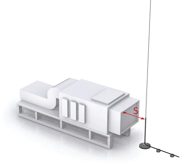 Where adequate separation exists between the Lightning Protection System and the conductive parts of the structure, side-flashing is considerably reduced.