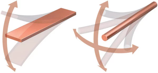 Solid circular section conductors are the easiest to install since they can be bent through any plane (360º) whereas tape can only be bent in two directions.