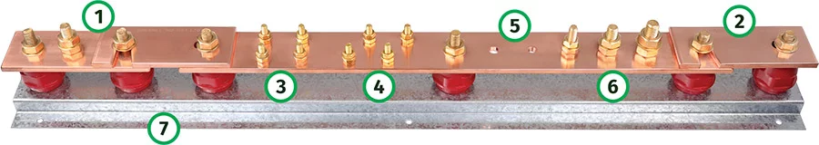 Parallel fixings can also be spaced to allow cable lug connections to be made from both sides of the Earth Bar.