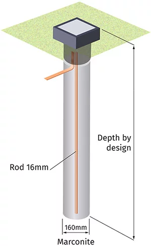 Through acting as a backfill, (Marconite® is a highly conductive material), the surface area of the electrode is increased, thus reducing the electrodes’ resistance to earth.