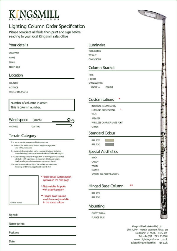 Kingsmill have a range of standard columns (street lighting poles) available for either flange base mounting or burying directly in the ground.