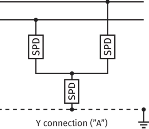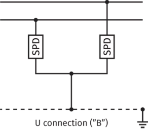 The DC side of the PV system can be either unearthed (insulated) in which case A (top right) shows how SPD’s should be connected OR with one pole earthed, B (bottom right) shows how SPD’s should be connected.