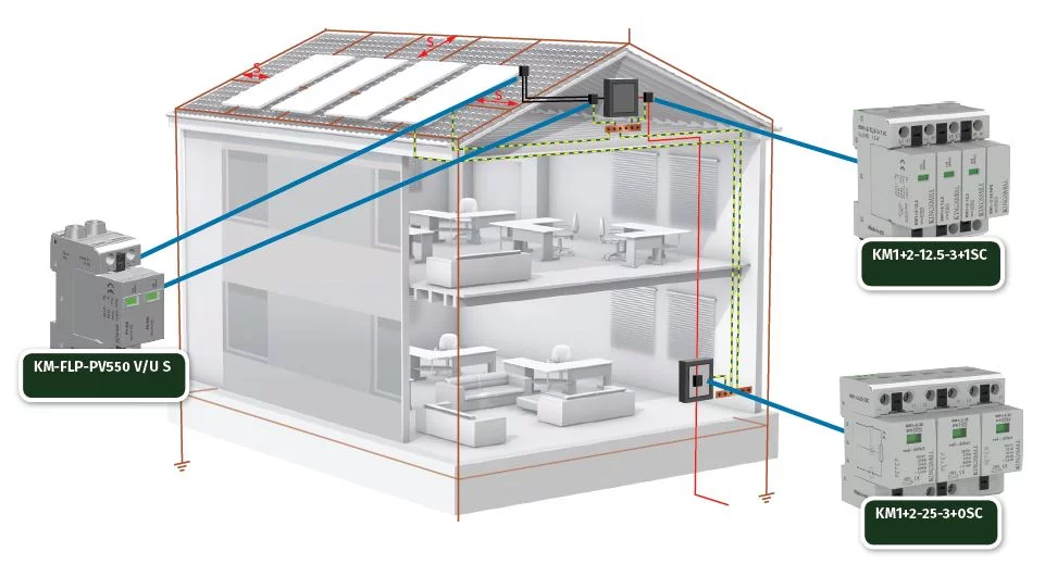 The core (key device) of the whole photovoltaic system is the inverter, therefore lightning and transient overvoltage protection should be focused here and it should be incorporated into the whole Lightning Protection System. Additionally, photovoltaic units and their support structures should be integrated into the earthing design.