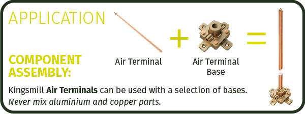 Air Terminals are designed to be used with either the standard Air Terminal Base, Multi-Purpose Base or the Side Mounted Brackets.