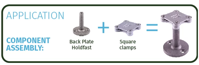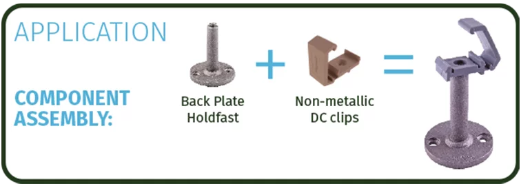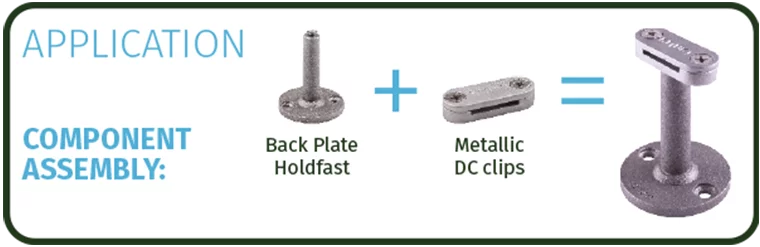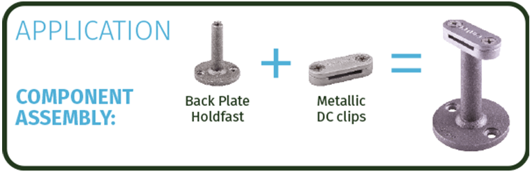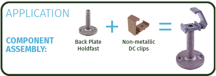Back Plate Holdfasts maintain a set distance of 75mm between the lightning protection conductor and the surface of the structure being protected (when required).