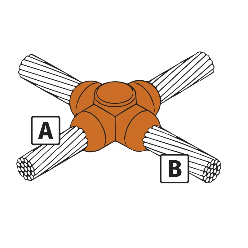 Horizontal to Horizontal Cable Cross Joint – CC4 is a cable to cable exothermic welded connection that requires a HCD or HCE Handle Clamp.