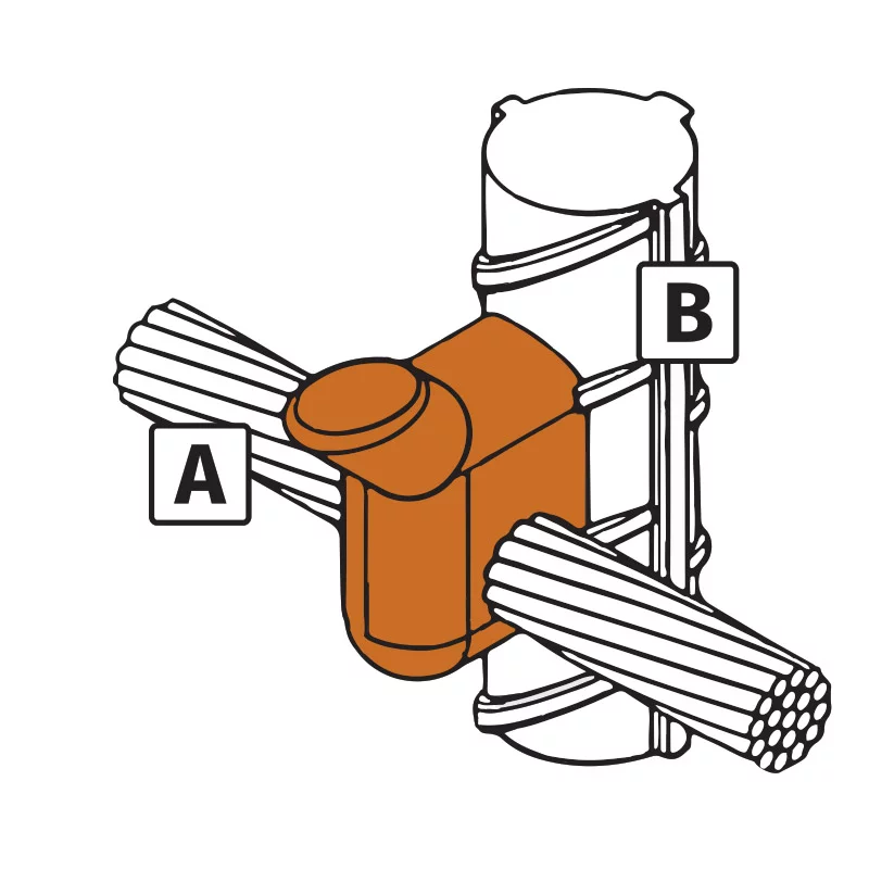 Horizontal Thru Cable to Vertical Rebar Joint – CRE3 is a cable to rebar exothermic welded connection that requires HCD Handle Clamp with a chain.