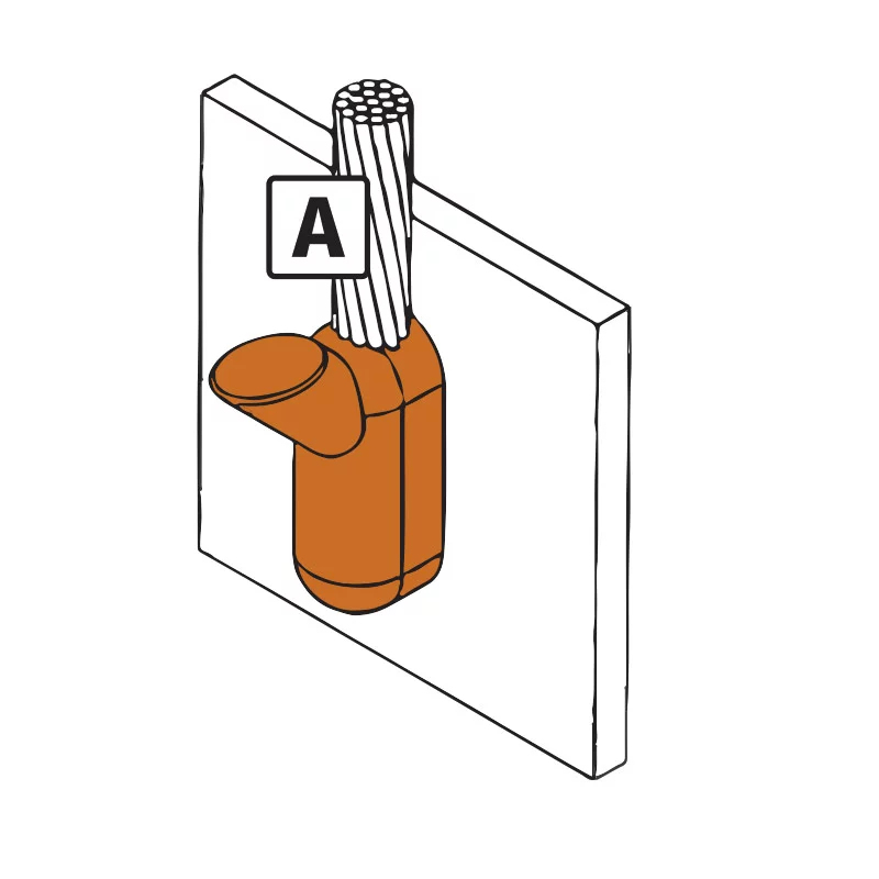 Vertical Cable (upwards) to Vertical Steel Surface Joint – CS7 is a cable to surface exothermic welded connection that requires a HCD Handle Clamp with a chain.