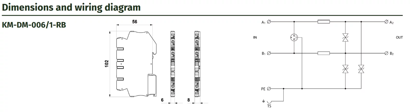 Wiring Diagrams for Two-Stage Surge Current Arrester for RS485 Signal Lines: