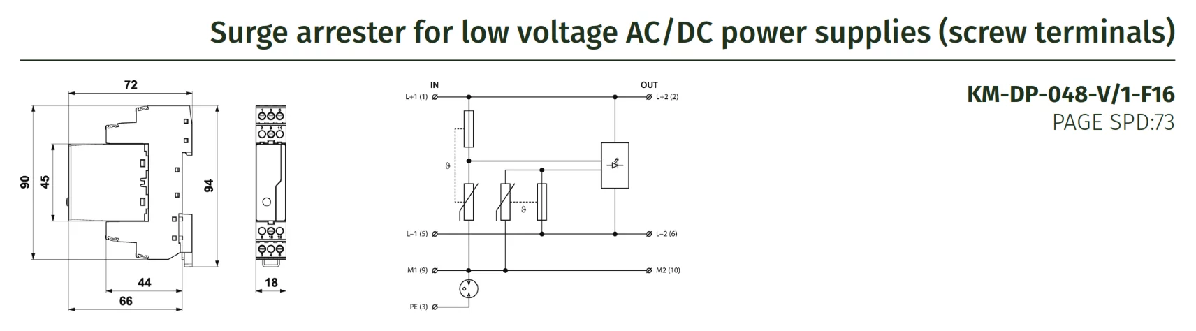 Surge protection device for all types of low voltage electric and electronic equipment rated up to 48 volts (nominal).