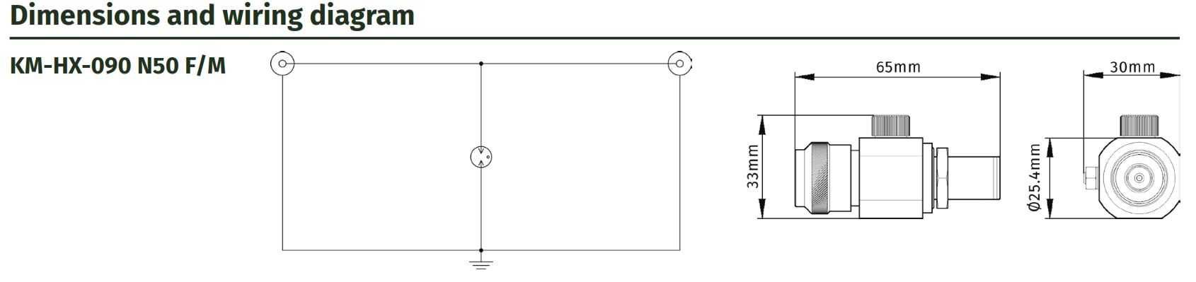 Dimensions and Wiring Diagram for Lightning Current Arrester for Coaxial Lines (N Connector):